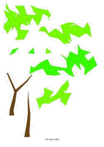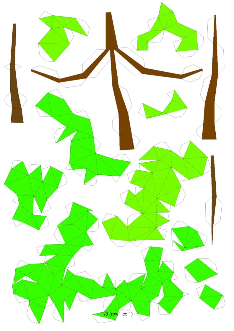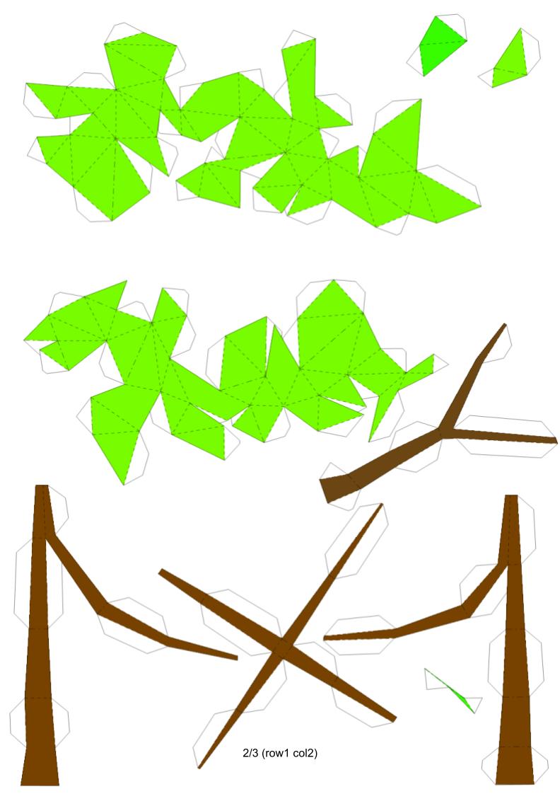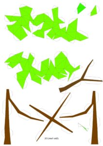 Una de las principales características de este papercraft de árbol es que la plantilla viene a color, e incluye dos diseños diferentes: uno con hojas en tono verde manzana y otro en verde oscuro.